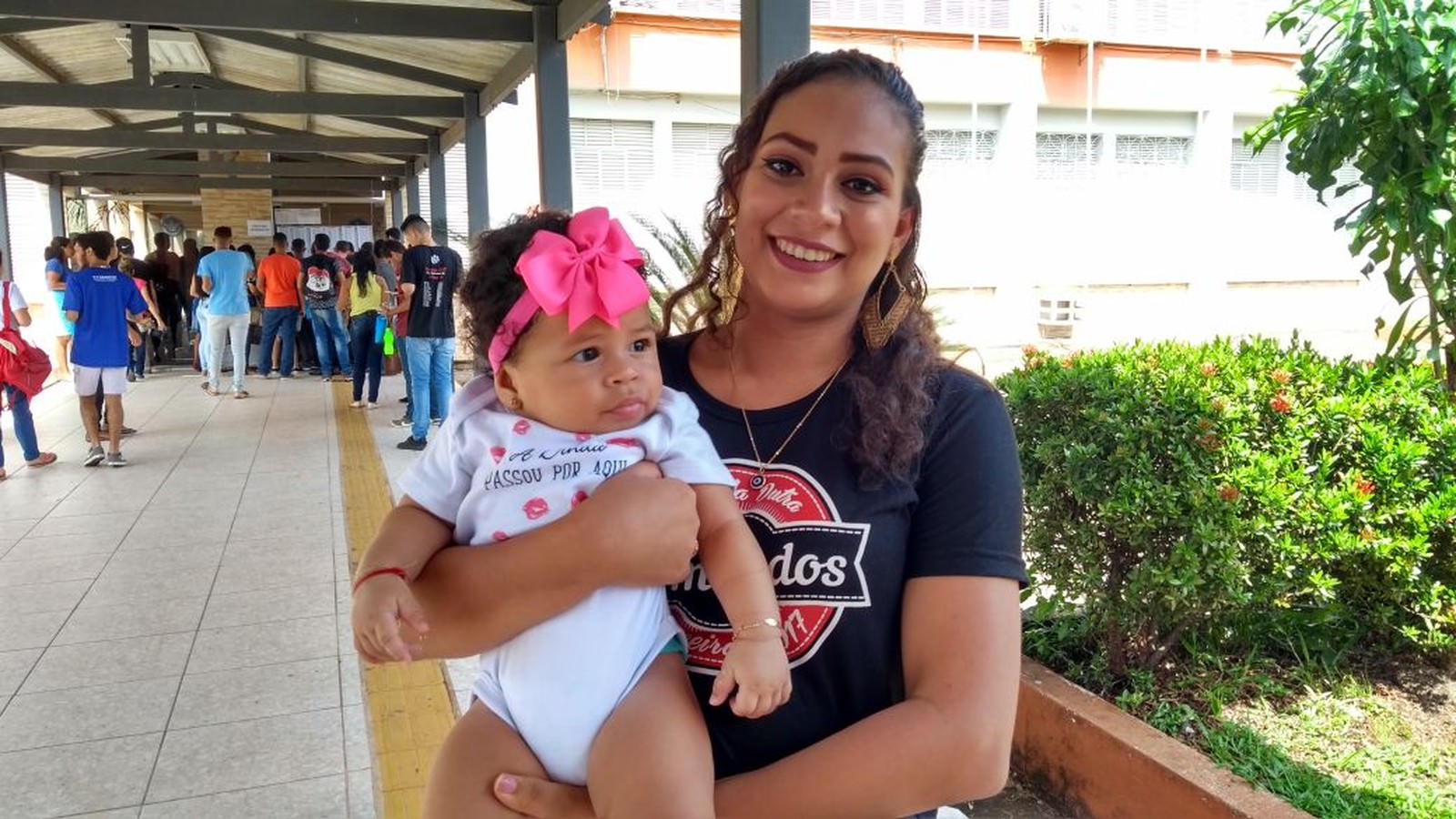 A adolescente Emanuela de Freitas Moreira, de 17 anos, levou a filha bebê para o local de prova do Exame Nacional do Ensino Médio (Enem), em Porto Velho. A candidata entrou na escola Carmela Dutra por volta de 10h15 (12h15 hora de Brasília).