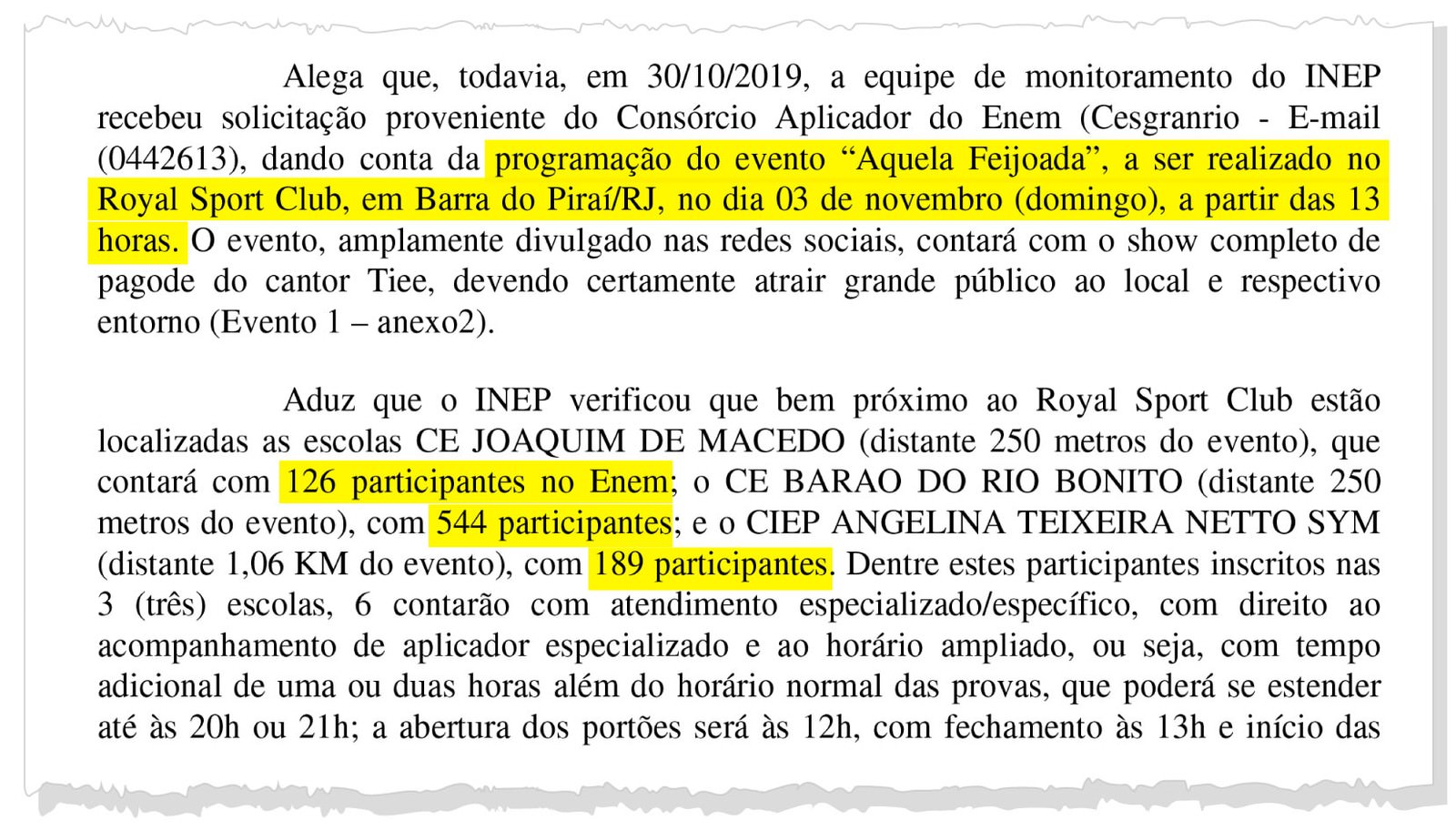 A Advocacia-Geral da União (AGU) afirmou que uma força-tarefa de servidores já atuou em pelo menos 66 ações judiciais diferentes relacionadas ao Exame Nacional do Ensino Médio (Enem) de 2019, que envolveram até um show do sambista Tiee.