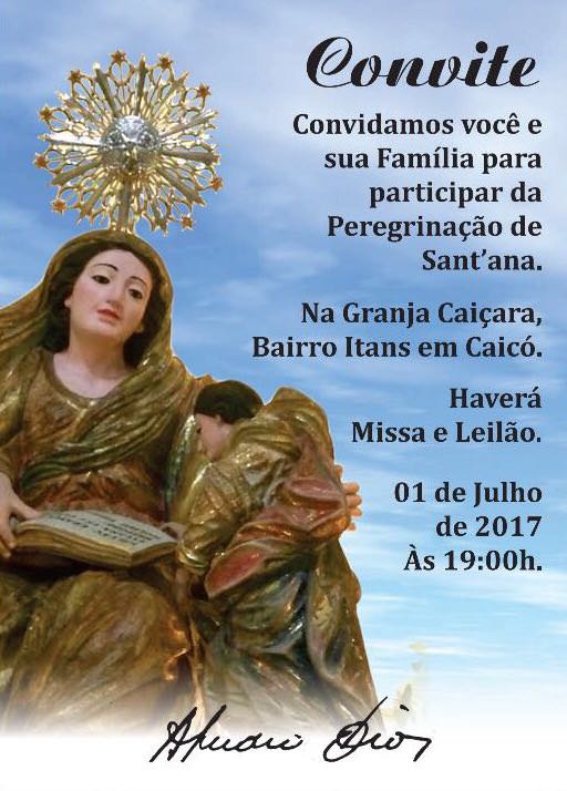 O vice-prefeito de Natal e líder político também no Seridó, Álvaro Dias, será o anfitrião no sábado, 01 de julho, quando receberá a visita da imagem de Sant’Ana na Granja Caiçara, localizada no Distrito Itans da cidade de Caicó.