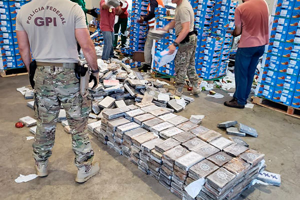 A quantidade de cocaína interceptada pela Polícia Federal no Rio Grande do Norte triplicou entre 2018 e 2019. Foram 5,8 toneladas da droga apreendidas no ano passado, grande parte em operações que revelaram o tráfico em meio a cargas de frutas exportadas pelo Porto de Natal com destino à Europa. O volume de cocaína colocou o porto entre as três rotas principais do tráfico internacional no Brasil, junto com o Porto de Santos (SP) e Paranaguá (PR). Em 2018, o volume de cocaína foi de 1,6 tonelada.