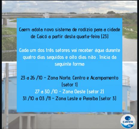 Caern anuncia mudanças no abastecimento de Caicó; Confira na imagem