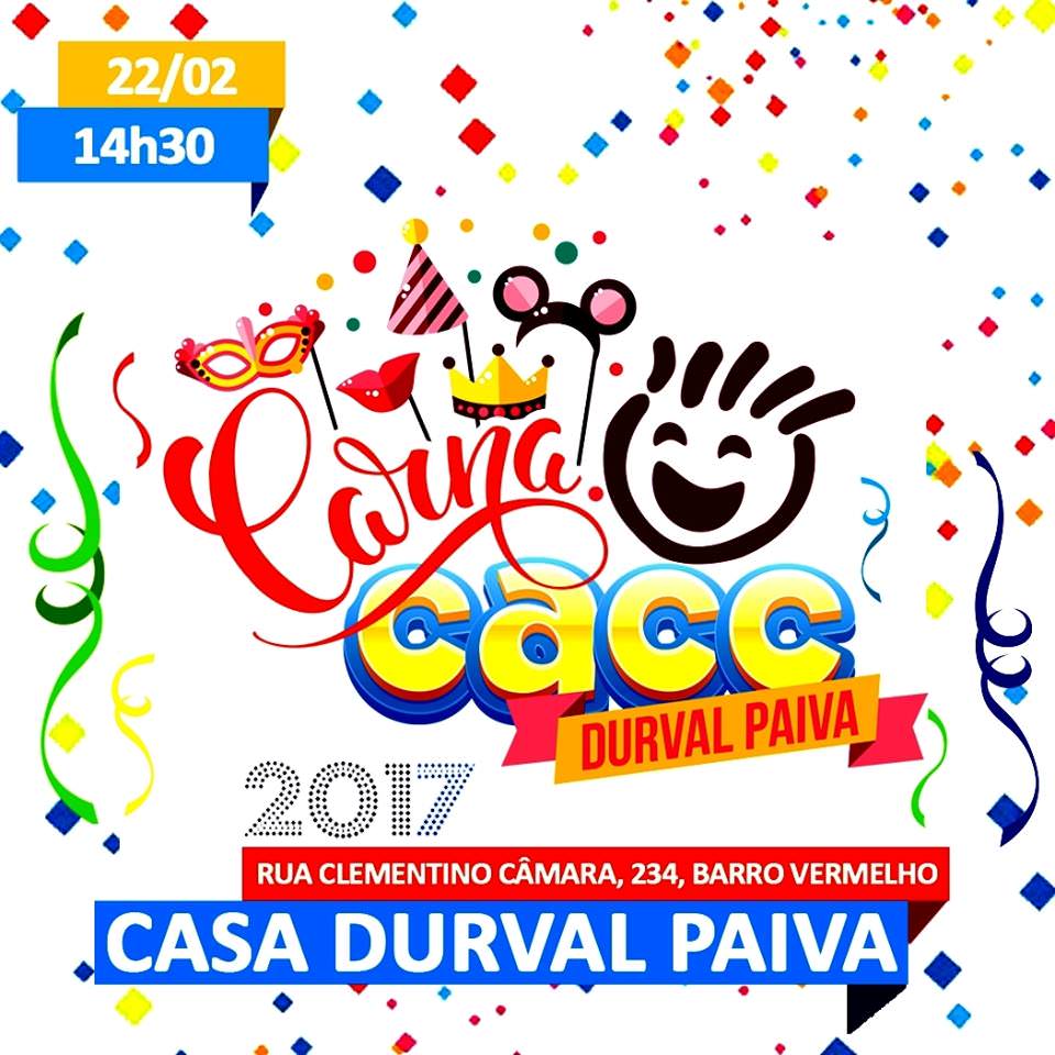 16730123_1321999691200238_5195866764990877960_nA Casa Durval Paiva convida a todos para participarem do Carnacacc 2017, que será realizado na quarta-feira (22) de fevereiro, a partir das 14h00 na área de lazer da Instituição. O carnaval das crianças e adolescente contará com atrações da Banda Eita Mamãe e Banda de Frevo, aulas de dança com André Mix Atividades, além de desfiles a fantasia.