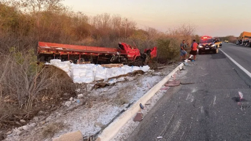 A colisão envolveu um caminhão carregado e um carro de pequeno porte, modelo Fiat Pálio. O motorista do carro ficou ferido e recebeu atendimento no local por uma equipe do Serviço de Atendimento Móvel de Urgência (SAMU).