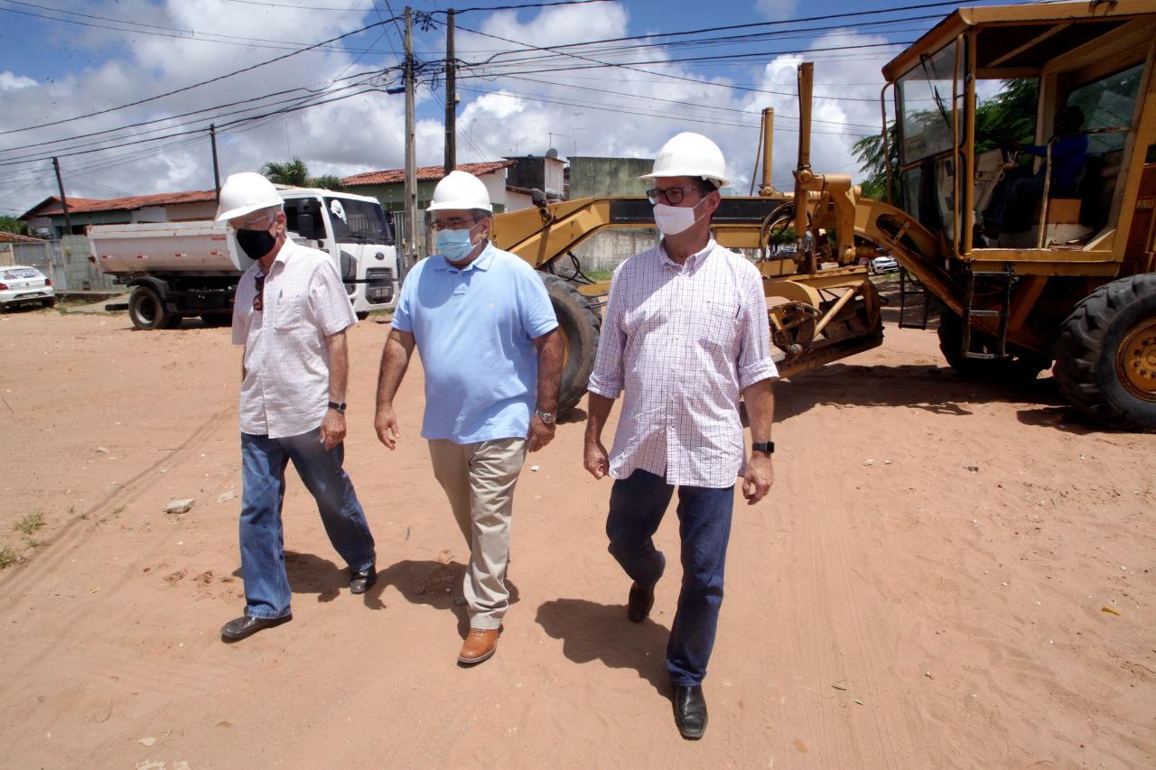 obras planalto 2020-10-09 fotos ALEX RÉGIS (4)As obras que contemplam a construção de uma lagoa de captação, além da drenagem e pavimentação de 18 ruas no bairro Planalto, zona Oeste de Natal, começaram nesta sexta-feira (09). Os serviços iniciaram pela rua Monte Celeste. O prefeito Álvaro Dias e o secretário municipal de Obras e Viação, Carlson Gomes, acompanharam a movimentação de máquinas e operários no canteiro de obras. Serão investidos R$ 16,3 milhões, sendo R$ 1,047 milhão como contrapartida da gestão municipal e restante de recursos do Governo Federal.