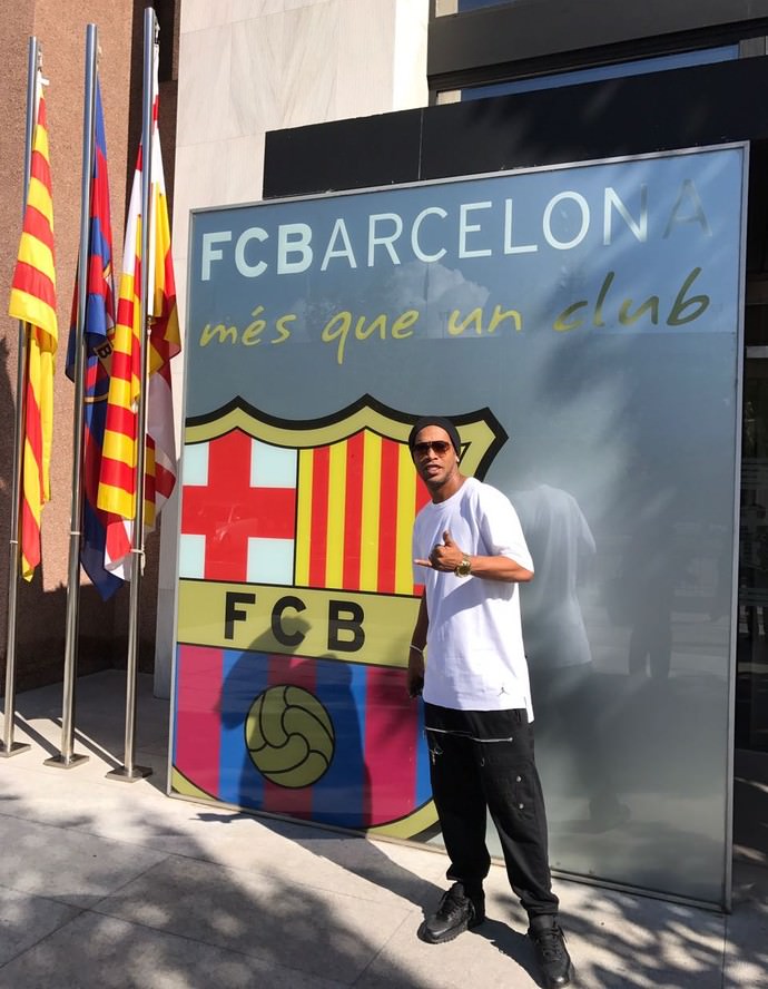 Ronaldinho Gaúcho retornou nesta sexta-feira ao local onde fez história há quase uma década. Após participar do Jogo pela Paz, em Roma, o craque brasileiro fez uma visita à sede do Barcelona, onde atuou entre 2003 e 2008. De acordo com a imprensa espanhola, o astro se reunirá com o presidente Josep Maria Bartomeu para conversar sobre o possível papel de embaixador do clube pelo mundo.