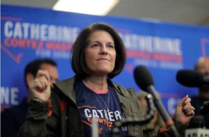 A candidata do Partido Democrata, Catherine Cortez Masto, foi reeleita senadora pelo estado de Nevada, nos Estados Unidos, no sábado (12), segundo a Associated Press. Com a vitória dela e do astronauta Mark Kelly, no Arizona, os democratas garante a maioria no Senado dos Estados Unidos após uma apertada disputa com os republicanos.