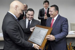 A Assembleia Legislativa do Rio Grande do Norte entregou, na tarde desta quinta-feira (2), o Título de Cidadão Norte-Riograndense ao ministro da Justiça, Alexandre de Moraes, que cumpre agenda em Natal relacionada ao combate da crise no sistema prisional. O propositor da homenagem foi do deputado Gustavo Fernandes (PMDB) e também participaram da entrega os deputados Hermano Morais (PMDB), Galeno Torquato (PSD) e o presidente da Casa, Ezequiel Ferreira de Souza (PSDB).