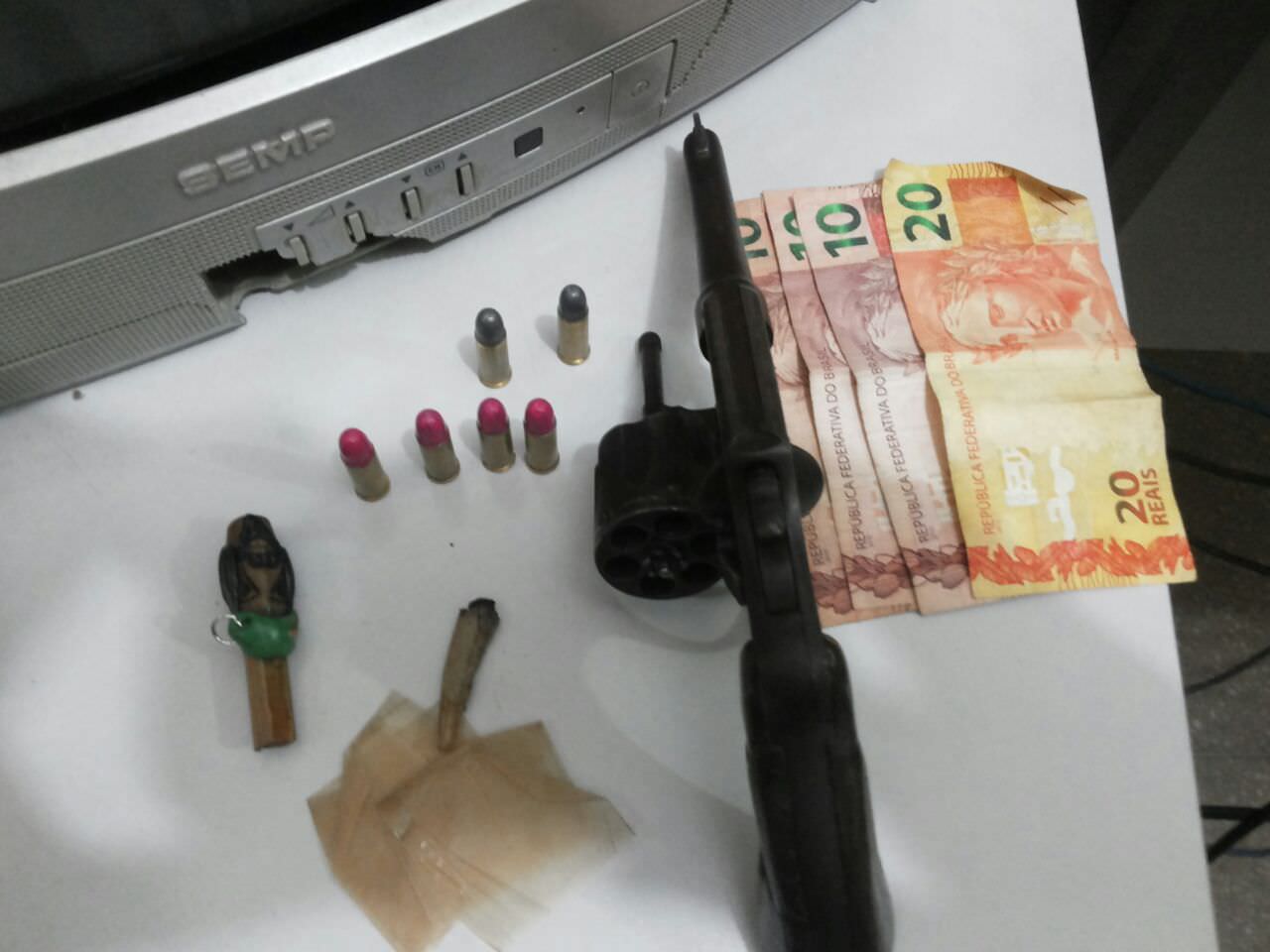 Os policiais faziam patrulhamento na área quando visualizaram os suspeitos que tentaram empreender fuga mas foram alcançados. A dupla informou a Polícia que a arma de fogo era utilizada para proteção pessoal, fato que também é considerado um crime já que não possuíam o registro da arma nem o documento que permite a posse dela.