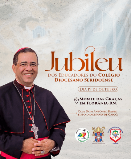 Este domingo, 19 de outubro, o Monte de Nossa Senhora das Graças, em Florânia, será o destino da peregrinação dos educadores e funcionários do Colégio Diocesano Seridoense (CDS). O momento especial marca o Jubileu dos Educadores dentro das comemorações do Ano Jubilar de 2025. A Santa Missa será presidida por Dom Antônio Ranis, reunindo toda a comunidade escolar em um gesto de fé, gratidão e renovação espiritual.