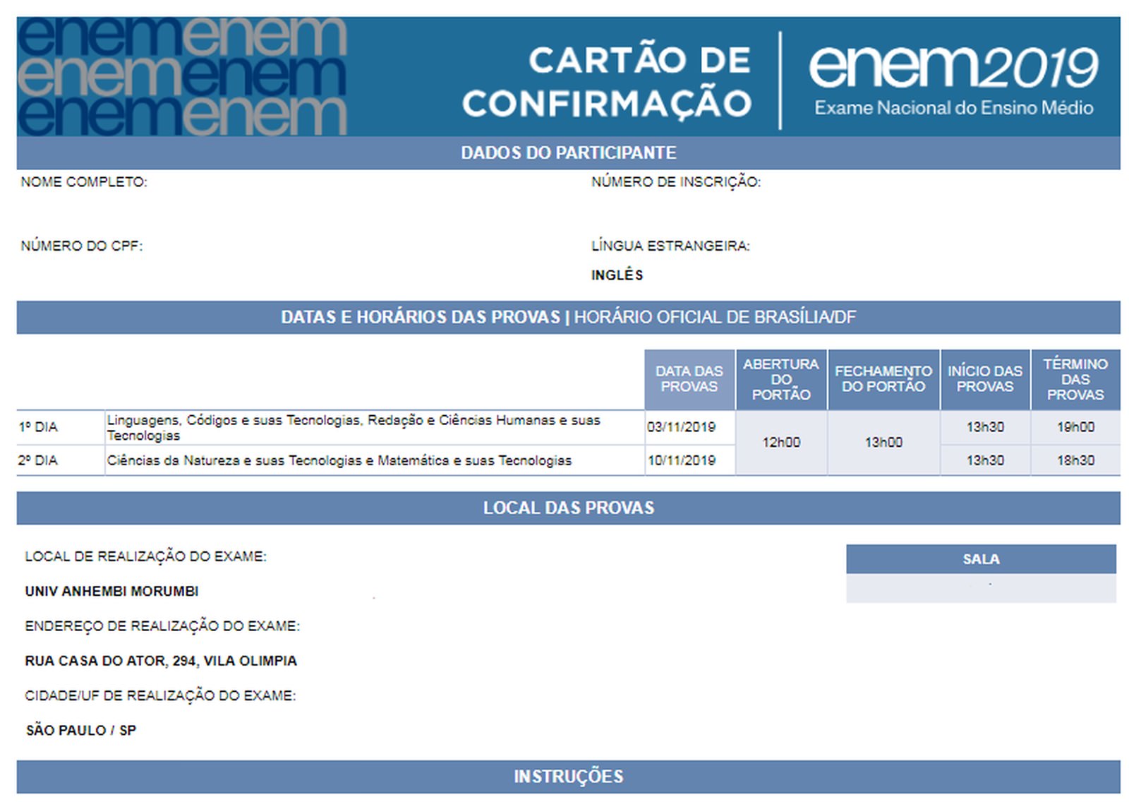 Os 119.324 inscritos no Rio Grande do Norte para o Exame Nacional do Ensino Médio (Enem) já podem consultar o cartão de confirmação das provas. O acesso ao documento na página do participante foi liberado nesta quarta-feira (16) pelo Instituto Nacional de Estudos e Pesquisas Educacionais Anísio Teixeira (Inep), responsável pelo exame.
