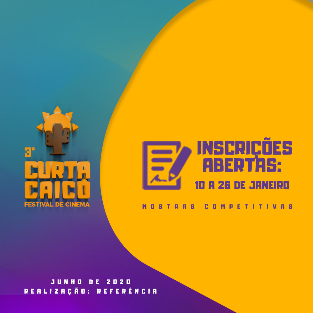 Telinha 01A organização do Curta Caicó abriu inscrições para a sua terceira edição, que será realizada no mês de junho de 2020.  Podem se inscrever curtas-metragens, de todas as regiões do Brasil, com duração máxima de 20 minutos e data de finalização a partir de janeiro de 2018. Os realizadores interessados podem inscrever seus filmes em formulário virtual disponibilizado no website www.curtacaico.com.br, no período de 10 a 26 de janeiro de 2020.