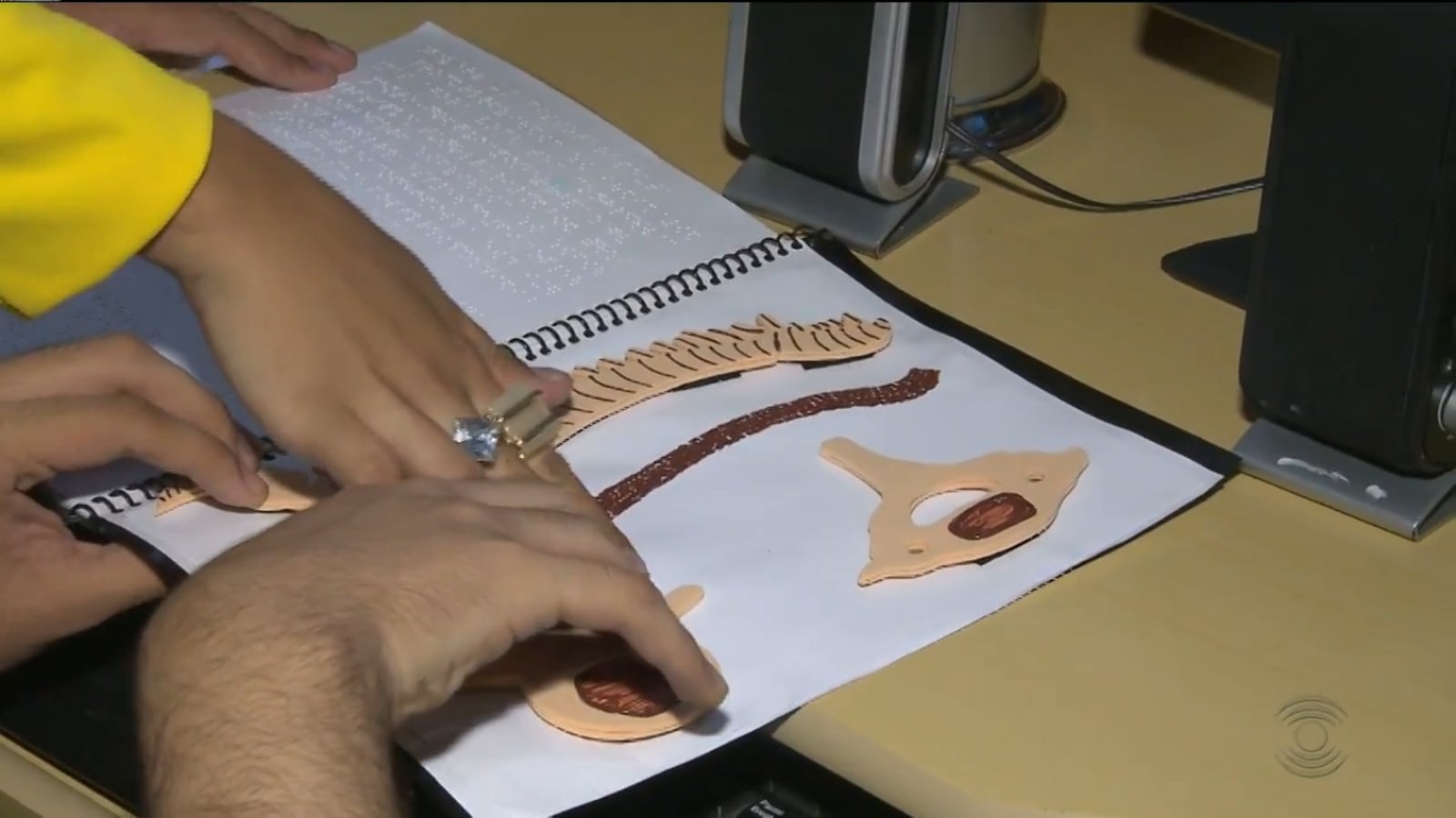 Como os deficientes costumam aprender a usar os computadores pela voz, o cego acaba ligando os ouvidos nas caixas de som e se curvando, seguindo uma postura errada que pode gerar problemas na coluna. A estudante resolveu criar uma cartilha “orientações posturais” que foi escrita no sistema braile e proporciona aos usuários um contato com materiais pedagógicos em um sistema próprio de leitura para cegos.