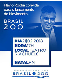 O empresário Flávio Rocha, dono da Guararapes, e um grupo de outros empresários e políticos brasileiros, lançam no próximo dia 21 às 17 horas, no Teatro Riachuelo em Natal, o movimento Brasil 200.