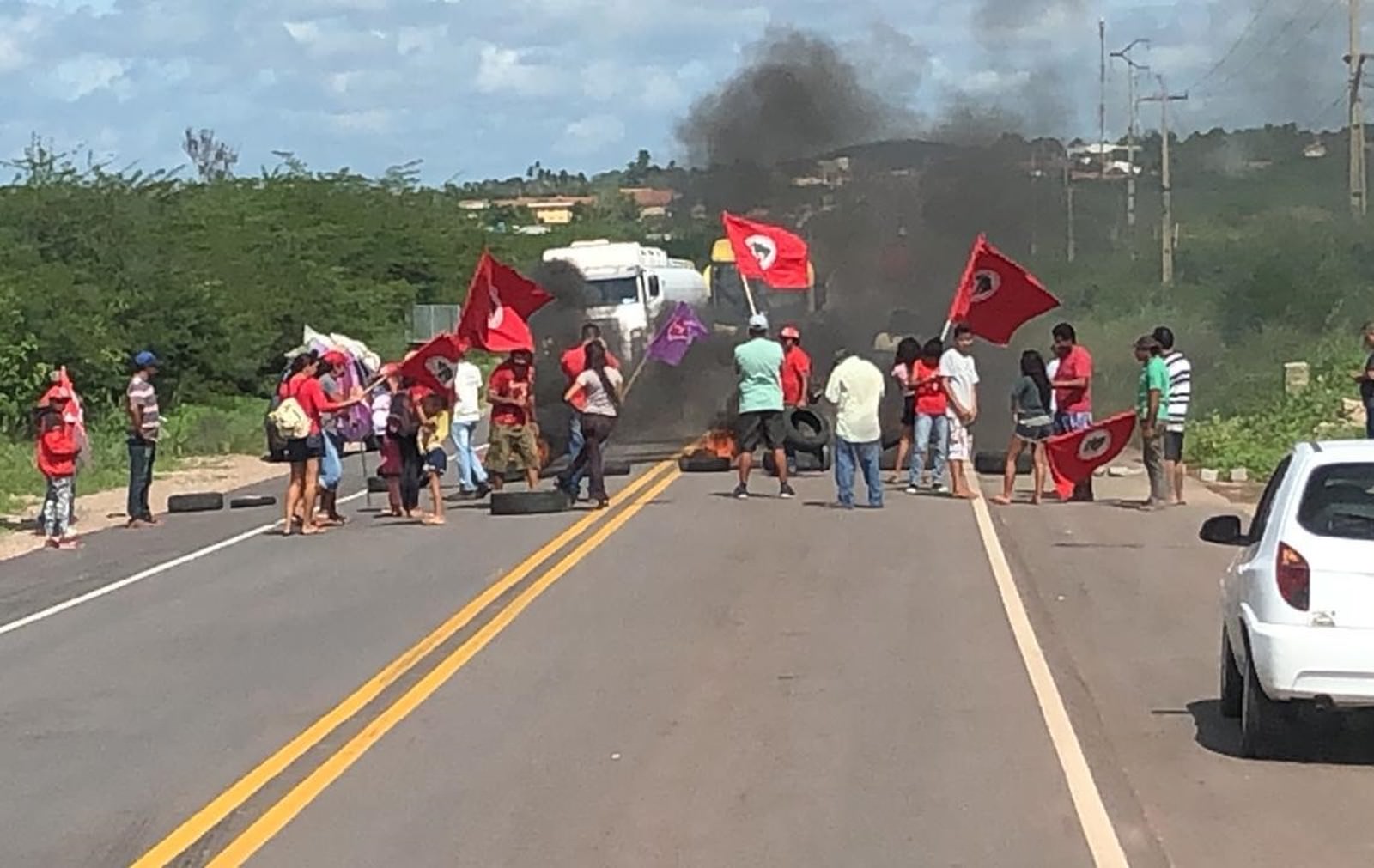 O movimento social também seria responsável pelo outro bloqueio, realizado no quilômetro 105 da BR-406 em João Câmara, no Agreste. No protesto, os manifestantes queimaram pneus e empunharam bandeiras do movimento. No momento da publicação desta matéria, equipes da PRF se deslocavam para os dois trechos.