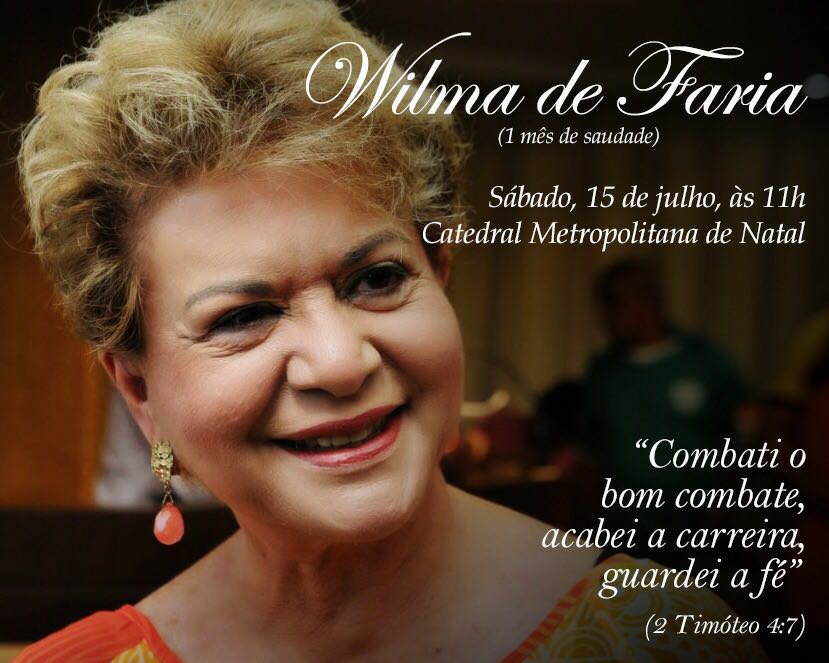 No próximo sábado, dia 15, será celebrada a Missa de 30º dia de falecimento da ex-governadora Wilma de Faria. A cerimônia acontecerá na Catedral Metropolitana de Natal.
