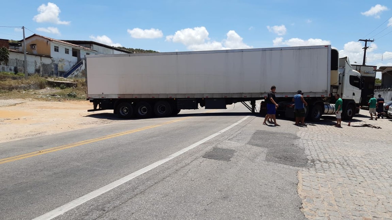 O motorista de um caminhão tentou fazer uma manobra e acabou deixando o veículo atravessado na BR-226, no bairro de Felipe Camarão, Zona Oeste de Natal, nesta terça-feira (21). O trânsito na via não ficou interrompido.