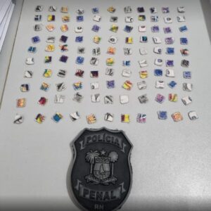Uma mulher de 34 anos de idade foi presa ao tentar entrar com 110 selos de LSD na Penitenciária de Alcaçuz, em Nísia Floresta, na Grande Natal, na manhã desta quarta-feira (12).