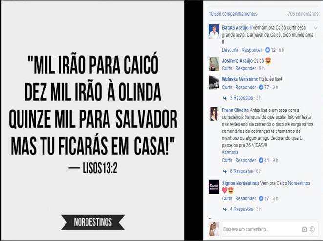A página do facebook Nordestinos, que contém mais de 2 milhões de fãs em sua rede, acabou publicando uma menção ao um dos maiores carnavais do nordeste, o carnaval de Caicó.