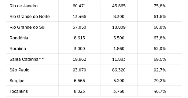 Das 27 unidades da federação, apenas quatro têm tropas com mais de 80% do efetivo fixado em lei: São Paulo, Ceará e Minas Gerais, além do Espírito Santo. Nos últimos anos, as tropas também foram se reduzindo em muitos casos. Onze unidades viram o número de efetivo cair: Acre, Amapá, Amazonas, Bahia, Distrito Federal, Goiás, Minas Gerais, Rio Grande do Sul, Rondônia, São Paulo e Tocantins.