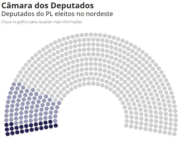 O Partido Liberal (PL), do presidente Jair Bolsonaro, foi o que elegeu a maior bancada na Câmara dos Deputados em 2022: a legenda ocupará 99 das 513 cadeiras. Mesmo no Nordeste, berço político do ex-presidente Lula, o PL ficou em 1º lugar: terá 23 deputados federais (15,2% dos 151 da região), à frente do União Brasil (União), com 21.