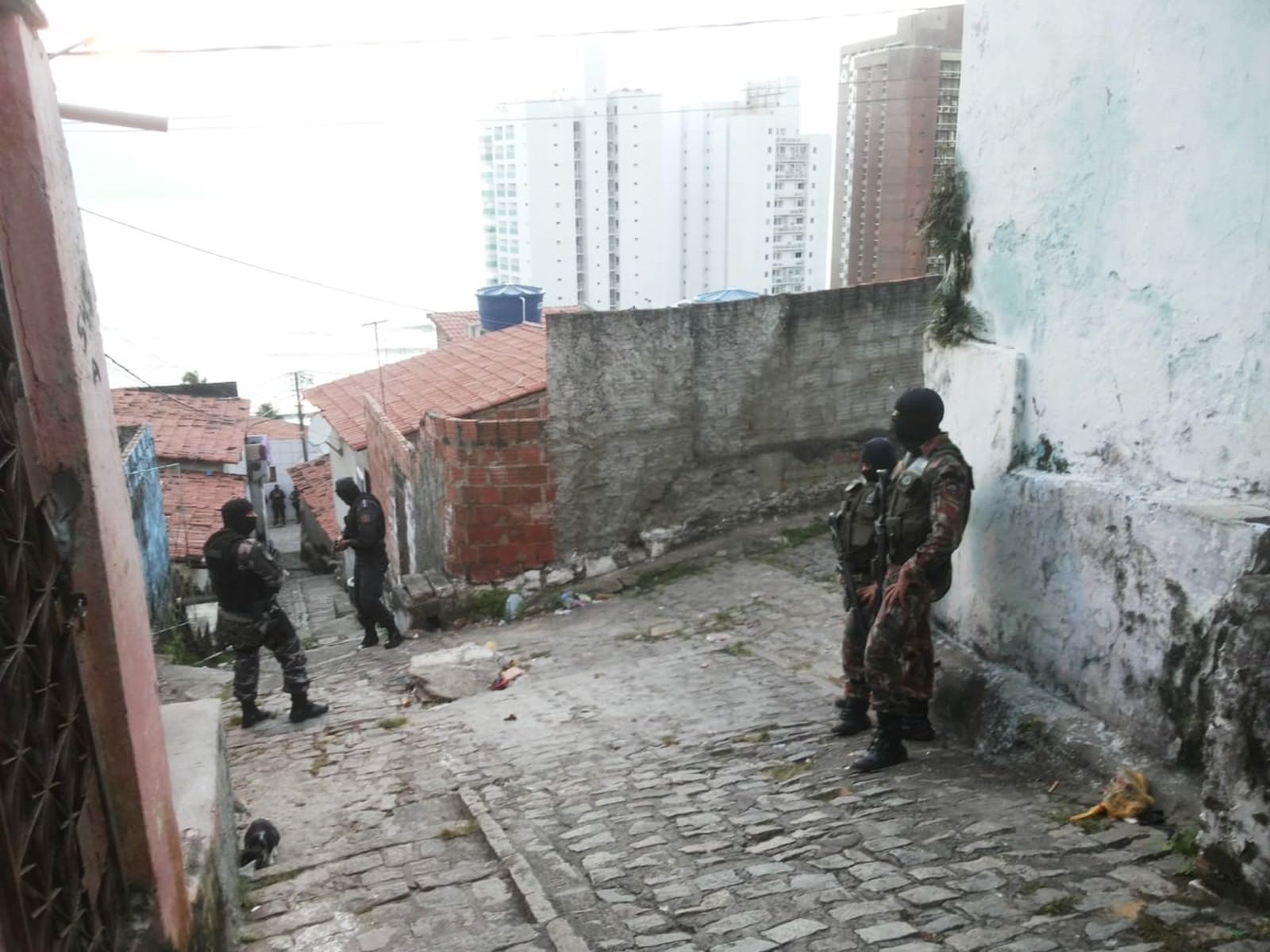 PMTrês homens e duas mulheres foram detidos no início da manhã desta terça-feira (17) durante uma operação policial no bairro de Mãe Luíza, na Zona Leste de Natal. Segundo a PM, foi uma ação em busca de criminosos, e também para manter a segurança no bairro. Drogas foram apreendidas. Os detidos foram levados para a Central de Flagrantes da Polícia Civil.