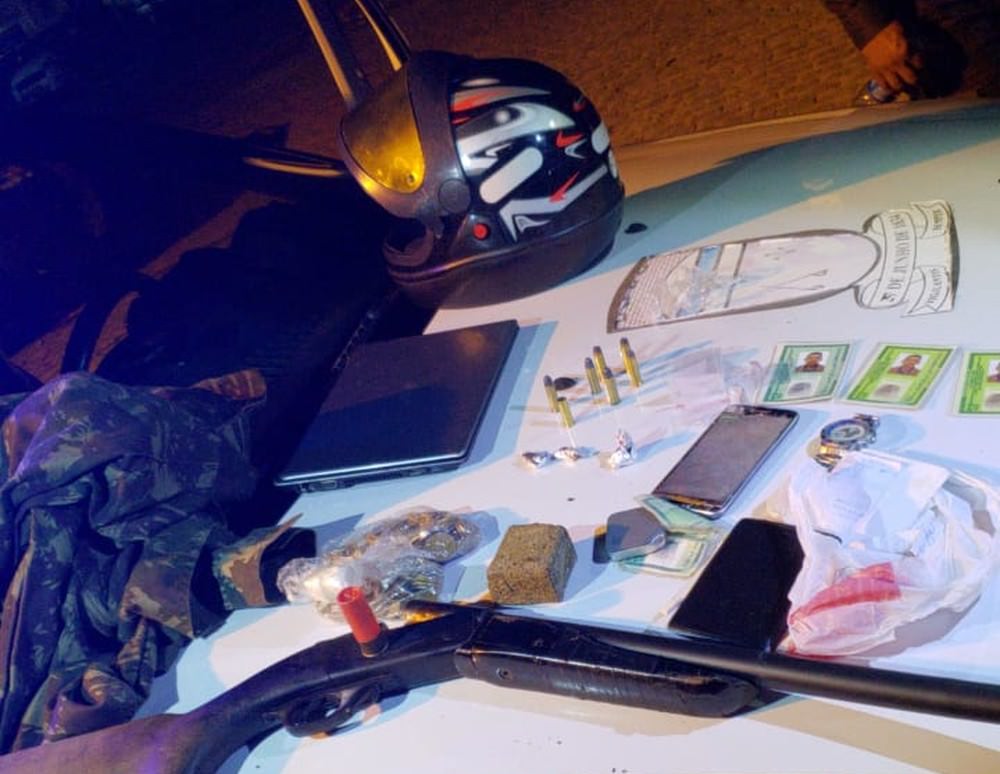 Foram apreendidas porções de maconha e crack, além de papelotes e dinheiro fracionado, o que indica o tráfico de drogas. Com ele, os policiais encontraram ainda uma espingarda calibre 12, munições, relógios, notebook, celular e várias identidades. Um segundo suspeito que estava com o colombiano conseguiu fugir do cerco da PM.
