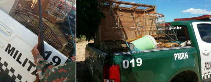 No local, foram apreendidas aves e silvestres e uma espingarda Cal 12. Também foram apreendidos um viveiro e várias gaiolas onde as aves estavam aprisionadas. Todo material e o responsável foram conduzidos para a Delegacia Regional de Policia Civil (3a DRP) em Caicó para os procedimentos cabíveis.