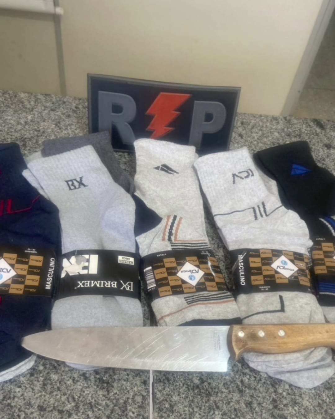 Ao ser abordado, o suspeito foi contido pela guarnição e, durante a busca pessoal, foi encontrada também uma faca. Diante dos fatos, o indivíduo foi conduzido à Delegacia de Polícia Civil para a adoção dos procedimentos legais cabíveis.