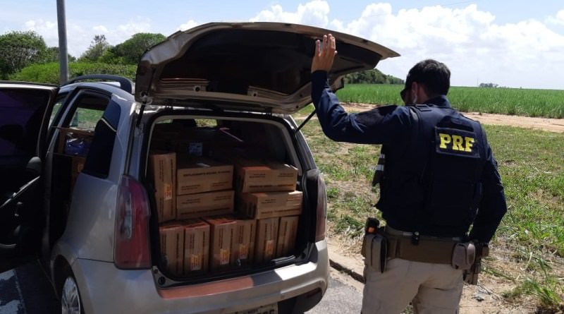 Durante a abordagem, os policiais desconfiaram da quantidade de volumes na parte traseira do veículo. Ao abrirem a porta traseira, encontraram várias caixas de papelão com a mercadoria tanto no porta-malas, como no banco de trás. Questionado sobre a documentação fiscal, o homem disse não tinha.