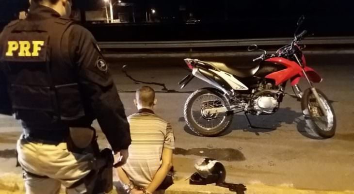 A Polícia Rodoviária Federal prendeu na noite desta terça-feira (25) na BR-101, em frente ao Instituto Federal de Educação (IFRN) de Parnamirim/RN, um homem que conduzia uma motocicleta CG 125 Bros de cor vermelha. Após consulta aos sistemas, constatou-se que tratava-se de um veículo roubado.