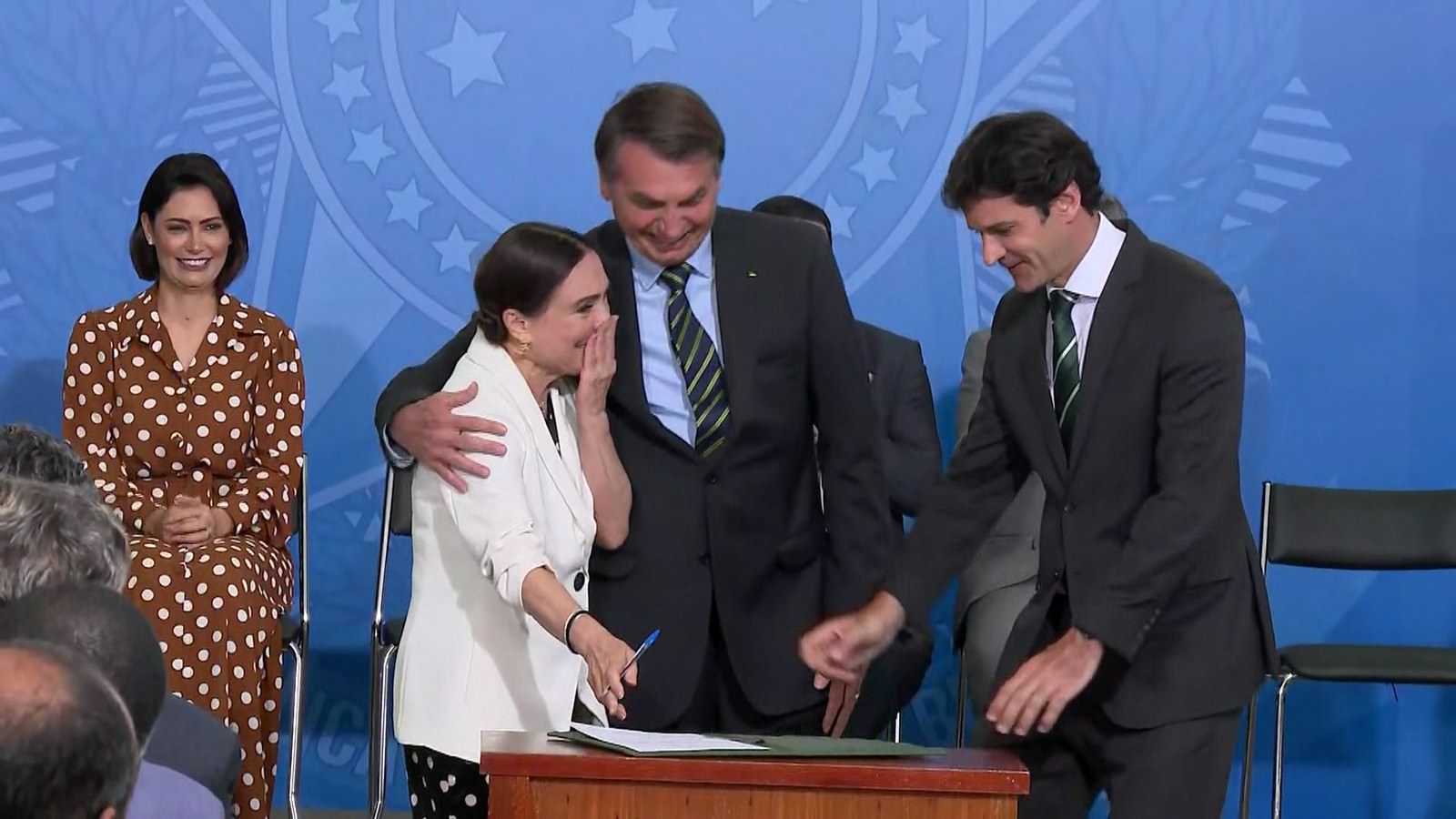 A atriz Regina Duarte tomou posse nesta quarta-feira (4) como Secretária de Cultura do governo de Jair Bolsonaro em cerimônia realizada nesta manhã no Palácio do Planalto em Brasília. A atriz é a quarta ocupante do cargo em 14 meses.