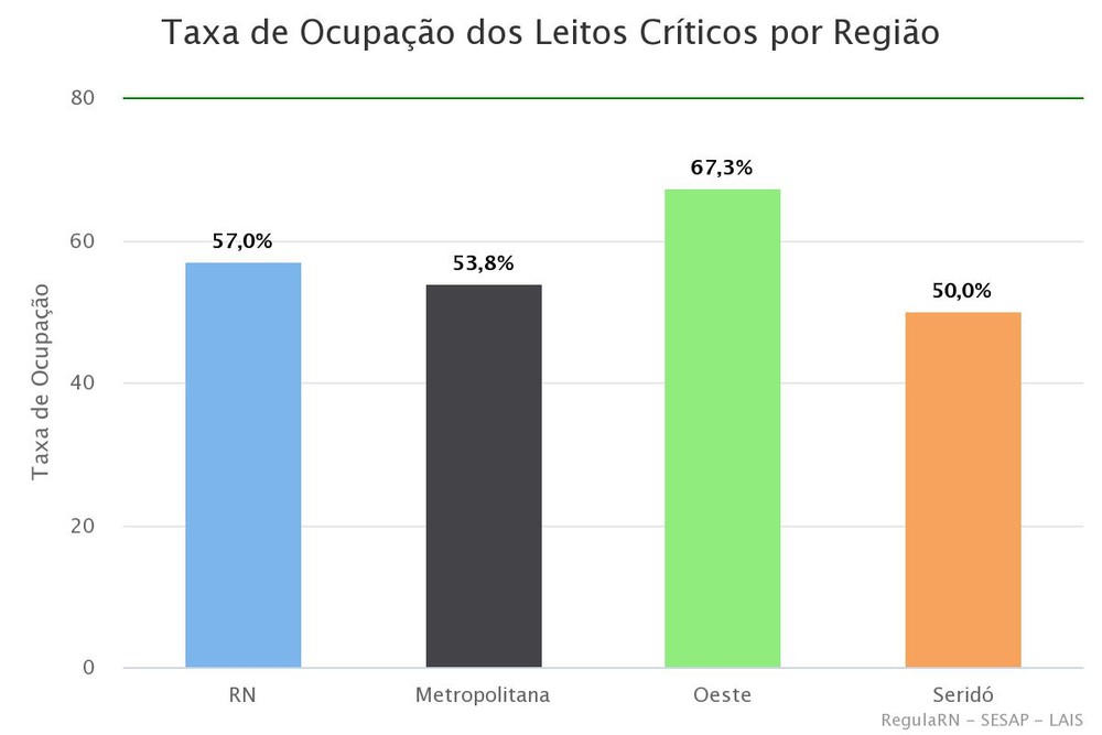 Na manhã desta segunda-feira (5), a taxa estava ainda menor, em 57% – o valor, no entanto, ainda pode variar ao longo do dia. Por volta das 10h, o estado registrava 223 leitos ocupados, 168 disponíveis e outros 24 bloqueados. A região Oeste era a que tinha maior percentual de leitos críticos ocupados: 67,3%. No Seridó, a taxa era de 50% e a região metropolitana de Natal, 53,8%.