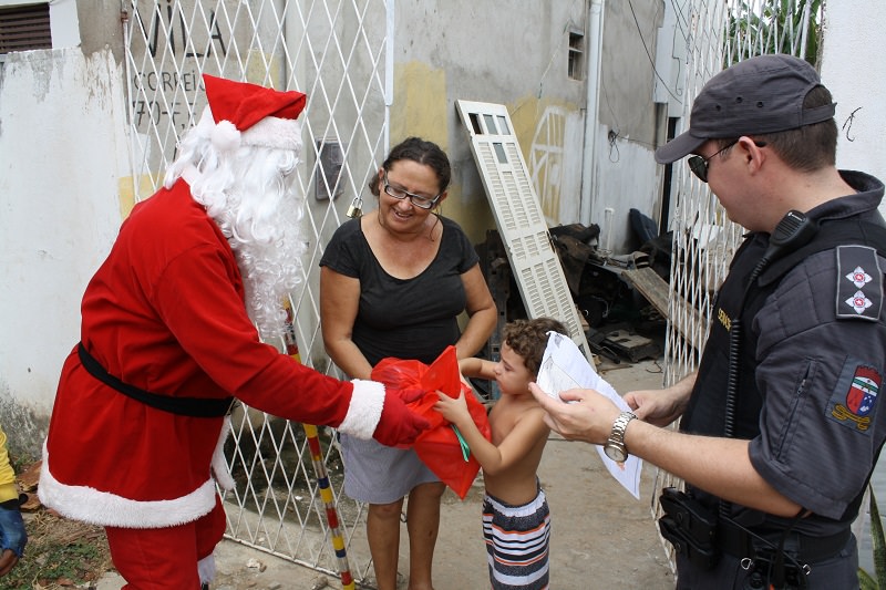 Na manhã desta sexta-feira (18) crianças do Bairro Planalto, na zona Oeste de Natal, receberam em suas residências presentes das mãos de policiais militares do 9º Batalhão de Polícia Militar (9º BPM) que atuam no Programa Ronda Cidadã da Área Integrada de Segurança Pública 11 (AISP 11). A ação faz parte da campanha Papai Noel dos Correios que é considerada uma das maiores ações sociais natalinas do Brasil. Também participaram da ação, um carteiro e o Papai Noel dos Correios.