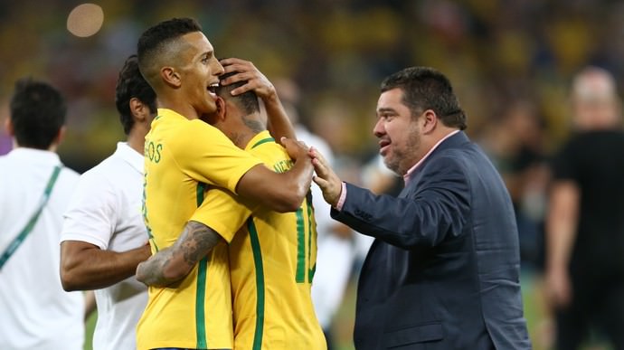 Gustavo Feijó, um dos cinco vice-presidentes da CBF, está usando sem autorização a imagem de quatro campeões olímpicos – Neymar, Renato Augusto, Walace e o técnico Rogério Micale – em sua campanha para prefeito de Boca da Mata, em Alagoas.