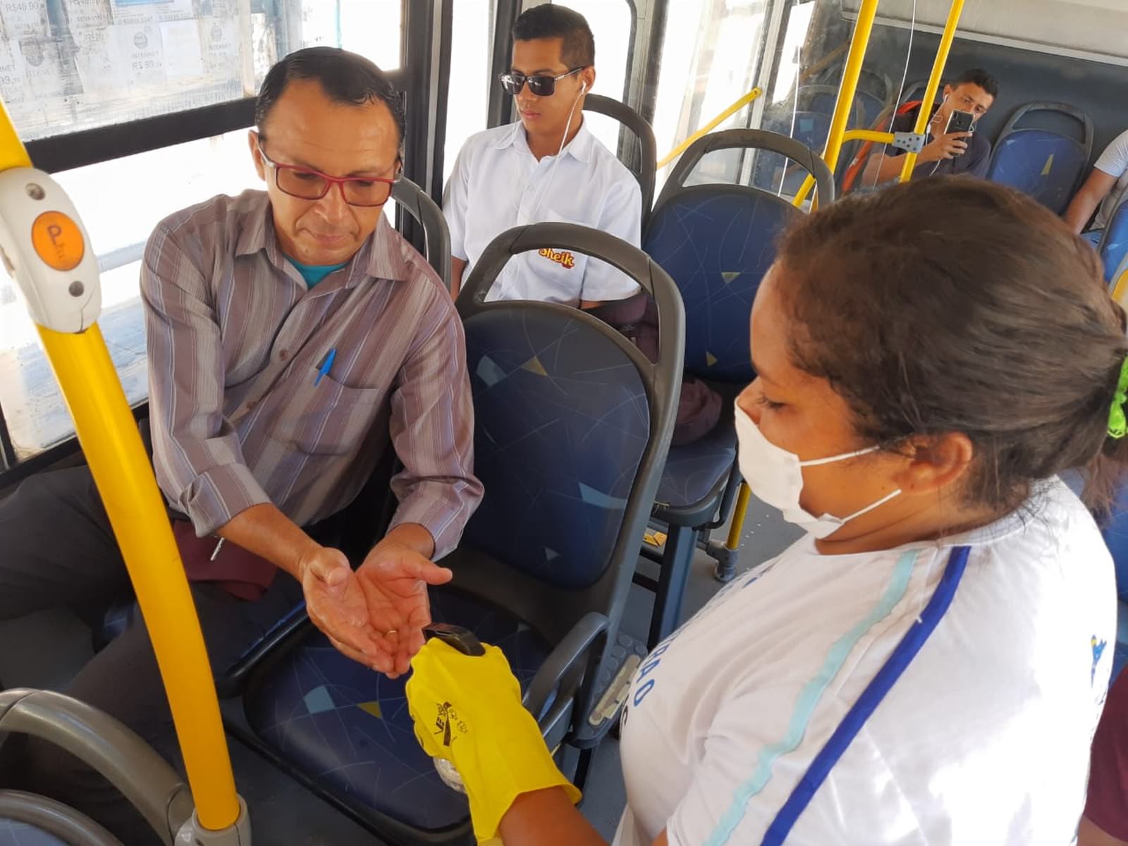 As equipes utilizaram álcool e água sanitária nos corrimões e barras dos ônibus, além de higienizar as mãos dos passageiros. A ação ocorrerá sempre a partir das 8h e vai até às 17h por tempo indeterminado. Nesta terça-feira (24), a Prefeitura de Natal aumentou a frota em 46 ônibus para circulação nas ruas depois de ter reduzido a frota a 30% no dia anterior. Na segunda-feira (23), passageiros registraram pessoas em pé e aglomeradas nos corredores dos coletivos.