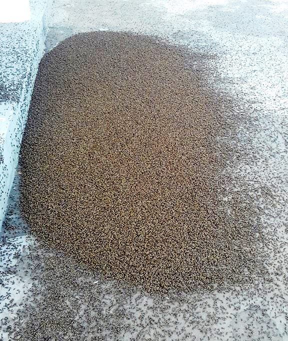 No município de Equador as formigas reapareceram em grande quantidade. Por lá foi preciso varrer e usar uma pá para poder limpar as calçadas das casas.