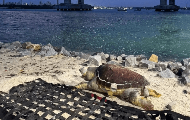 “A gente percebeu que a tartaruga tinha vindo a óbito pela interação com outra espécie, que a gente vem investigando, inclusive. É a ingestação do peixe baiacu. A partir dessa interação ela morre por asfixia. É uma ocorrência que vem sendo registrada nos últimos anos”, disse a bióloga Gleyciane Ferreira, do Cemam.