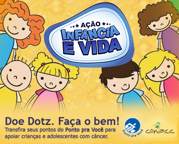 Ainda dá tempo de transformar pontos Dotz em esperança para crianças com câncer. A Ação “Infância e Vida” – iniciativa da Confederação Nacional das Instituições de Apoio à Criança e ao Adolescente com Câncer e do Banco do Brasil – permite doar os pontos com vencimento até 25/12 para a CONIACC. Clique em www.dotz.com.br e faça a diferença.