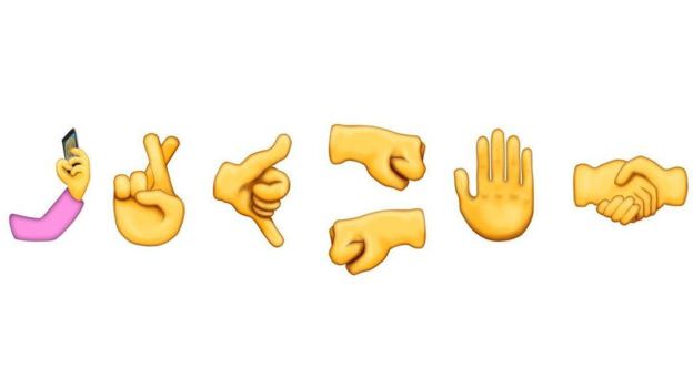 Entre as novidades estão gestos como dedos cruzados, para desejar boa sorte, e um braço tirando uma selfie. ambém chegou um emoji mais tradicional, o aperto de mãos, e o de um gesto que parece um ´me liga´ (mas que também pode ser um ´oi´ entre surfistas).