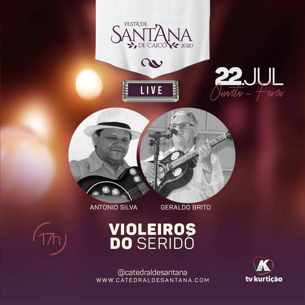 A Festa de Sant’Ana 2020 será virtual e a Paróquia de Sant’Ana vai realizar uma super programação cultural. Também estarei lá com vocês! Nossa primeira live será nessa quarta-feira (22), às 17horas, com a dupla de cantadores Antônio Silva e Geraldo Brito.